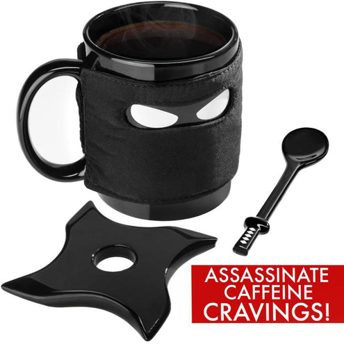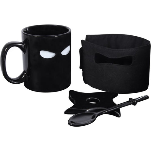 - Creative Ninja Mug Black Mask Ceramic Cup With Spoon Sword Coffee Milk Tea Mugs Novelty Gifts