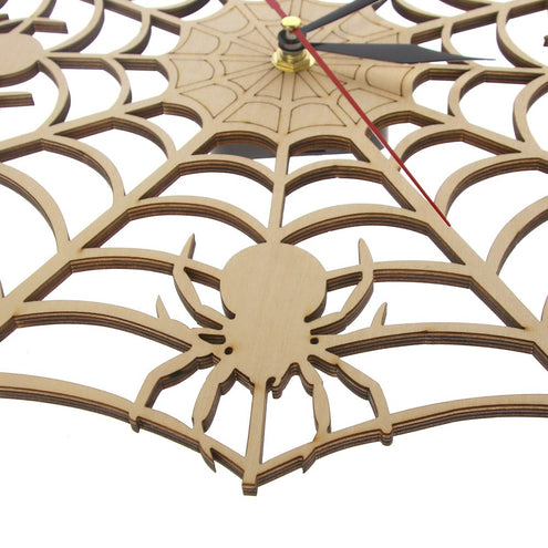 Modern Cob Web Wall Clock in Natural Wood Halloween Nightmare Creepy Spider Wooden Wall Clock Onyx Man Cave Home Decor Gift