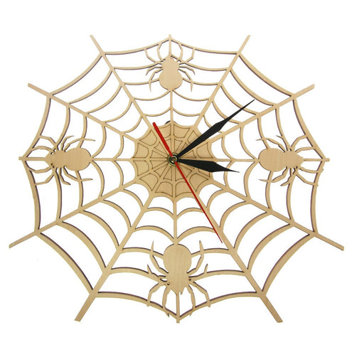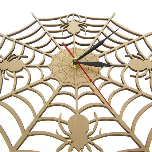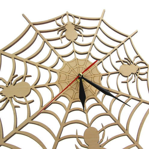 - Modern Cob Web Wall Clock in Natural Wood Halloween Nightmare Creepy Spider Wooden Wall Clock Onyx Man Cave Home Decor Gift