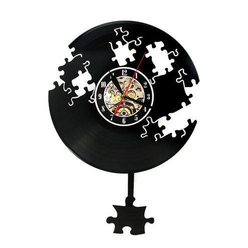 - Modern Jigsaw Wall Decor Falling Puzzle Wall Clock Puzzle Pendulum Vinyl Record Wall Clock Home Decor Steampunk Clock Watch