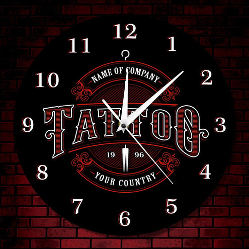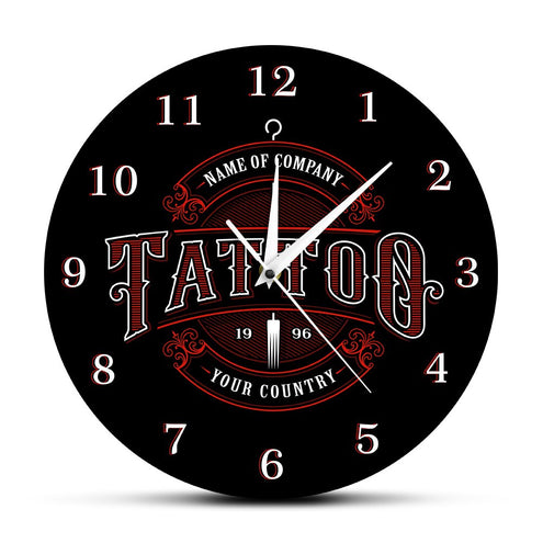 - Tattoo Time Custom Wall Clock Ink Shop Tattoos Gun Artist Gift Body Art Shop Studio Tattoos Logo Company Name Modern Wall Clock