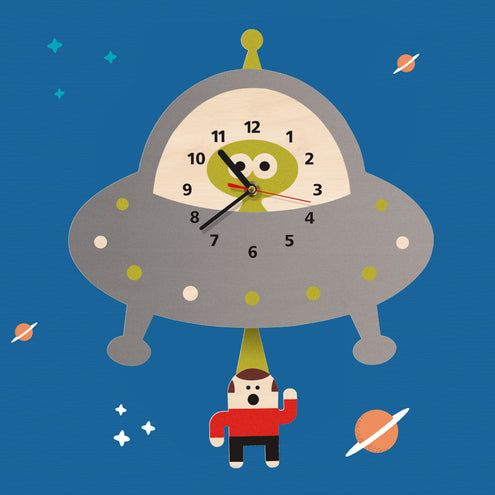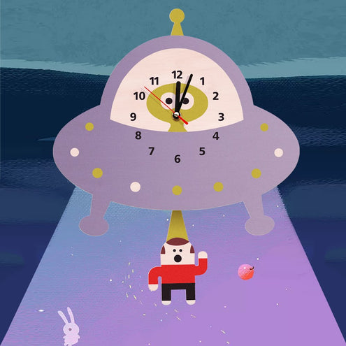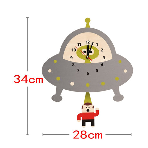 - Alien Abduction Wall Clock Flying Saucer Outer Space UFO Abducting Pendulum Wooden Wall Clock Kid Room Decoration Geek Gift