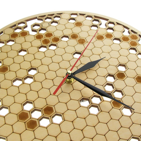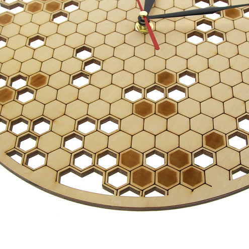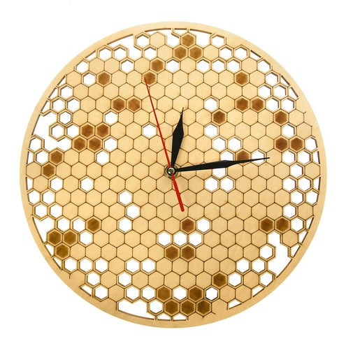 - Wood Clock Watch Kitchen Rustic Hanging Clock Modern Geometric Clock Honeycombs Wooden Wall Decor Art Bee Lover Gift for Family