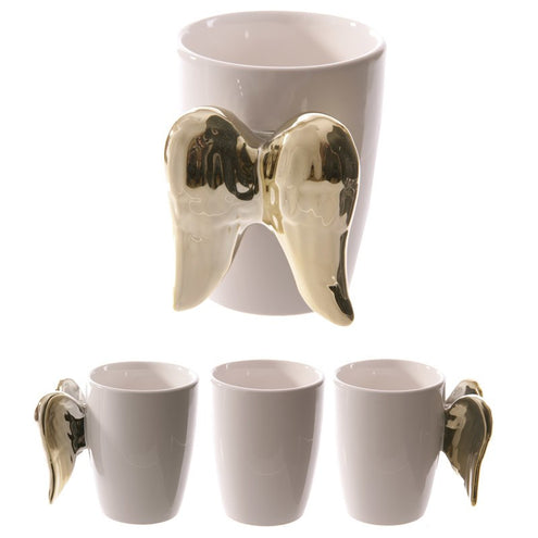 - 3D Angel Wing Handle Ceramic Mug Coffee Milk Mug Tea Drinking Cups Personality Drinkware Unique Gift Idea