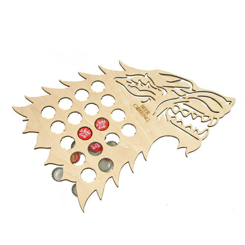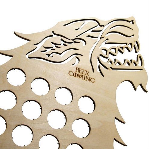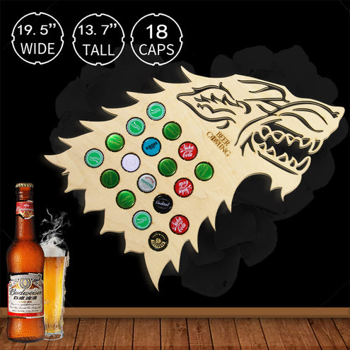 - Beer Is Coming Dire Wolf Wooden Beer Cap Map Howling Wolf Head Hanging Beer Cap Trap Wine Cap Display Collector Wine Lovers Gift