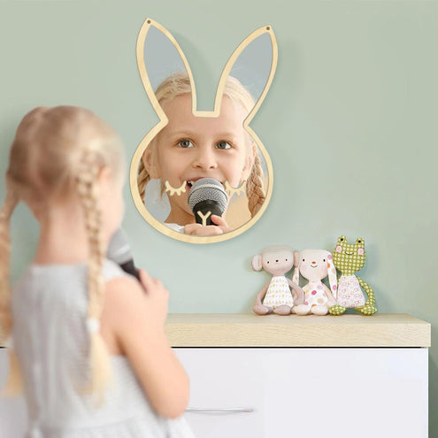 Bunny Sleepy Eyes Makeup Mirror Baby Kids Room Nursery Wall Decor Cute Animal Sleeping Rabbit Wood & Acrylic Safety Wall Mirror - Creative Wall Clock