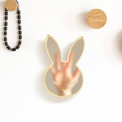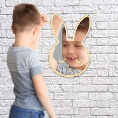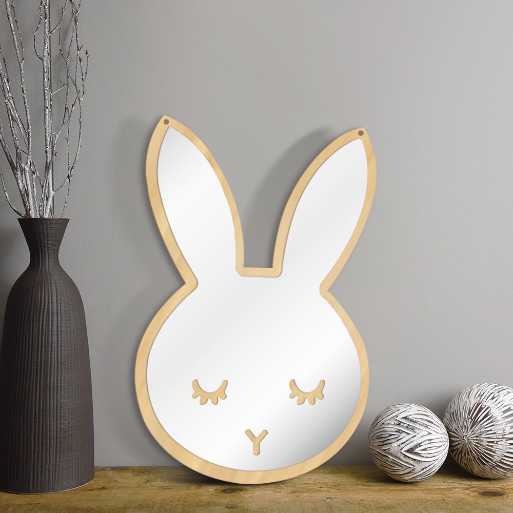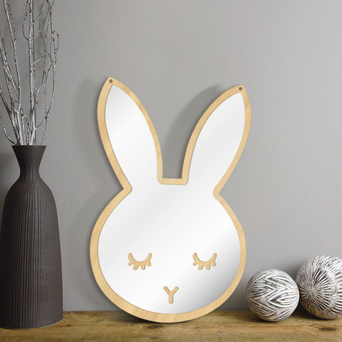 Bunny Sleepy Eyes Makeup Mirror Baby Kids Room Nursery Wall Decor Cute Animal Sleeping Rabbit Wood & Acrylic Safety Wall Mirror