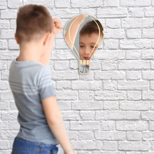 Hot Air Balloon Decoration Hanging Safety Mirror Arylic Wall Mirror With Wooden Back Hanging Wall Mirror For Living Room