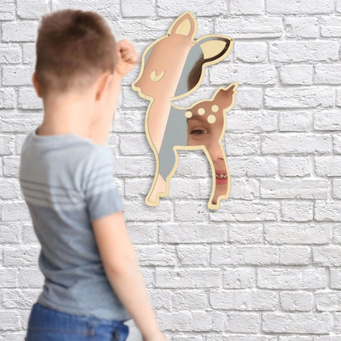 Little Deer Wall Mirror Acrylic Mirror and Wooden Back Hanging Mirrors Animal Nursery Wall Art Decor For Children's Room