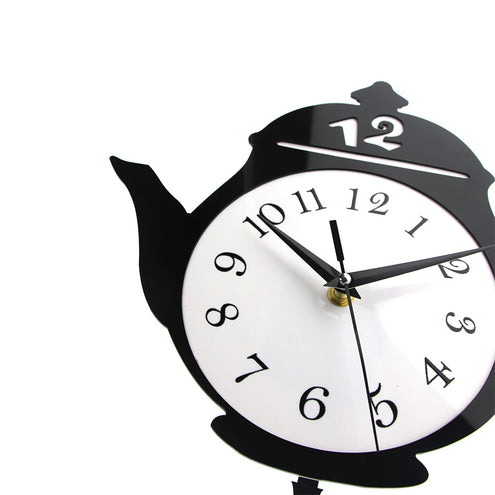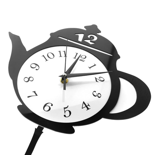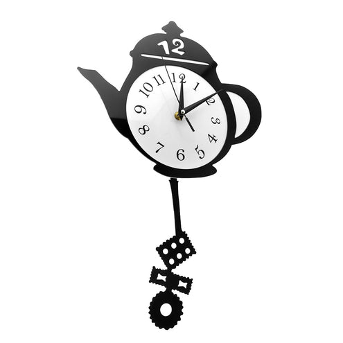 - Teapot Whimsical Pendulum Wall Clock Home Decor Kitchen Hanging Wall Watch with Tea Bag Cookie Swinging Pendulum Tearoom Decor